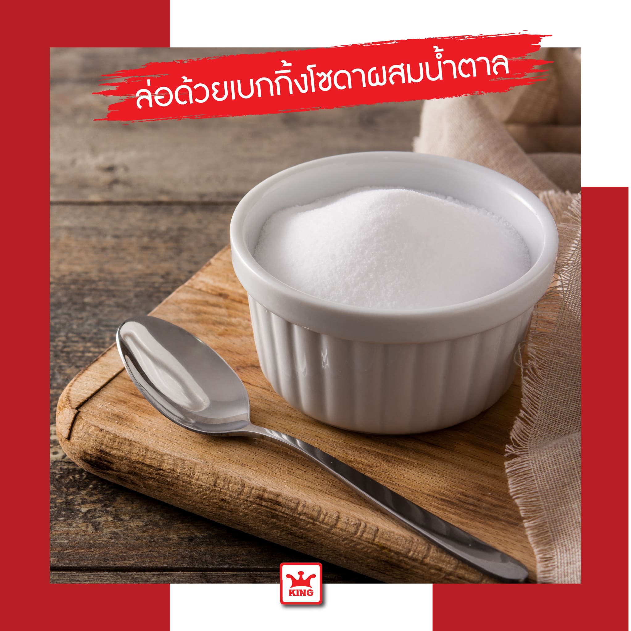 เป็นวิธีล่อแมลงสาบที่แยบยล เบกกิ้งโซดาเมื่อได้ผสมกับน้ำแล้วจะมีแก๊สทำให้ท้องอืดท้องเฟ้อได้ ถ้าเราเอาเบกกิ้งโซดามาผสมกับน้ำเขย่าๆ แล้วเติมน้ำตาลหวานๆ ลงไป แน่นอนว่าบรรดาแมลงสาบจะมาตกหลุมความหอมหวานนี้แน่นอน ถ้าแมลงสาบได้กินน้ำหวานผสมเบกกิ้งโซดาไปแล้วจะทำให้ภายในท้องของพวกมันมีแต่แก๊สและตายในที่สุด
