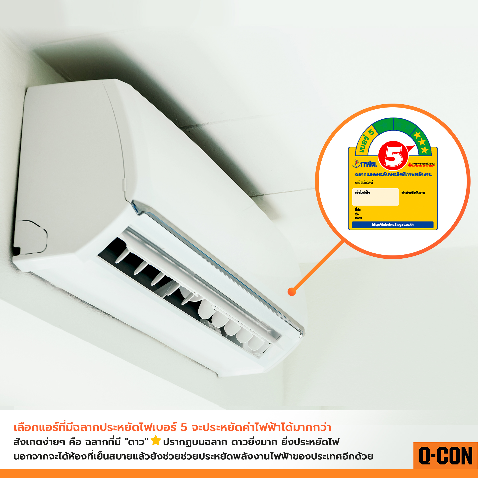 เลือกแอร์ที่มีฉลากประหยัดไฟเบอร์ 5 จะประหยัดไฟฟ้าได้มากกว่า