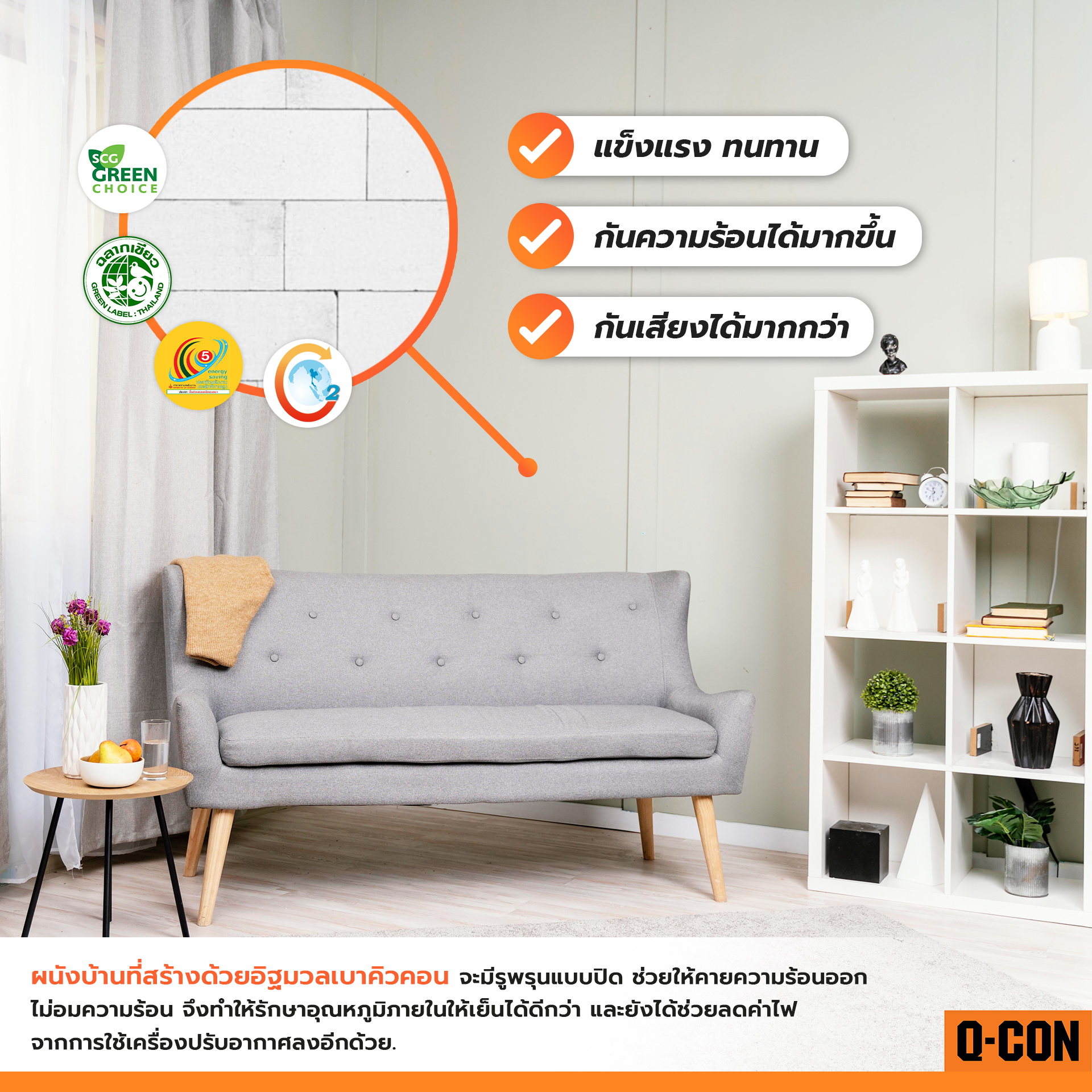 ผนังบ้านที่สร้างด้วยอิฐมวลเบาคิวคอน จะมีรูพรุนแบบปิด ช่วยให้คายความร้อนออกไม่อมความร้อน และยังผ่านการรับรองมาตรฐานต่างๆ อีกมากมาย