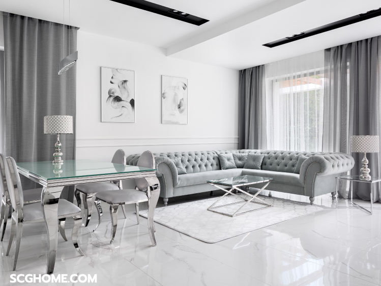 ห้องนั่งเล่น เป็นพื้นที่ส่วนกลางของบ้าน ถือเป็นจุดแรกที่สะท้อนสไตล์การตกแต่งที่สำคัญ การเลือกกระเบื้องก็ควรจะเชื่อมโยงกับงานอินทีเรียโดยรวม หากโทนหลักของบ้านเป็นการตกแต่งแนวลอฟต์หรืออินดัสเทรียล ก็อาจเลือกใช้กระเบื้องลายปูนหรือกระเบื้องลายไม้ที่มีกลิ่นอายกลมกลืนกัน ตรงกันข้าม…หากสไตล์หลักของบ้านคือโมเดิร์นมินิมอล เน้นความโปร่งโล่งสบายตา ก็อาจเลือกใช้กระเบื้องลายหินอ่อนสีขาวหรือสีโทนอ่อนอื่น ๆ แทน จุดเด่นอย่างหนึ่งของกระเบื้องพอร์ซเลนและแกรนิตโต้ก็คือมีลายสวยงามเหมือนหินธรรมชาติให้เลือกเยอะ ให้ความความหรูหราในราคาที่ถูกกว่าการใช้หินจริง