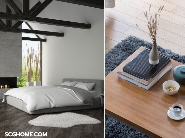 ห้องนอน ควรเสริมบรรยากาศที่นุ่มนวลผ่อนคลายมากกว่าห้องนั่งเล่น ไม่มีกฎเกณฑ์ในการเลือกตายตัว แต่ไม่ควรเลือกผิวกระเบื้องที่มันวาวมาก เพราะอาจสะท้อนแสงหลอดไฟจ้าตาในเวลากลางคืนได้ ด้านพื้นสัมผัสก็ไม่ควรเลือกแบบที่มี Texture หยาบกระด้างเกินไป เพราะอาจจะทำให้รู้สึกไม่สบายเท้าเวลาเหยียบ
