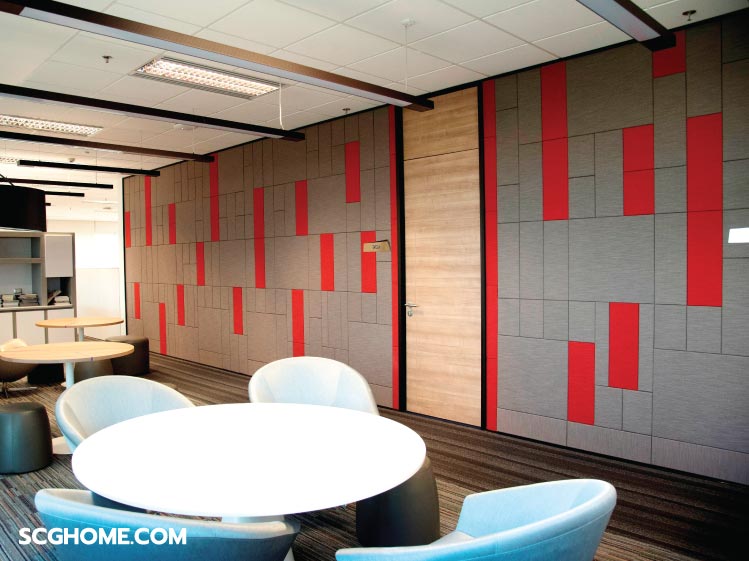 ห้องประชุม แนะนำให้บุ “วัสดุอะคูสติก เอสซีจี รุ่น Cylence Zandera” บนผนังเดิม 30%
