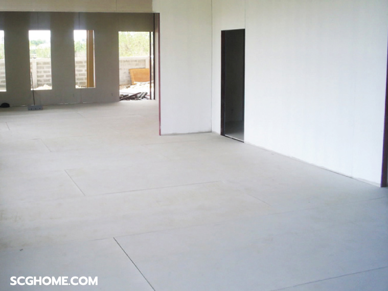ภาพ: ตัวอย่างการใช้งานพื้นซีเมนต์วูด เอสซีจี เมก้าฟลอร์ ลายเสี้ยนไม้เซาะร่อง